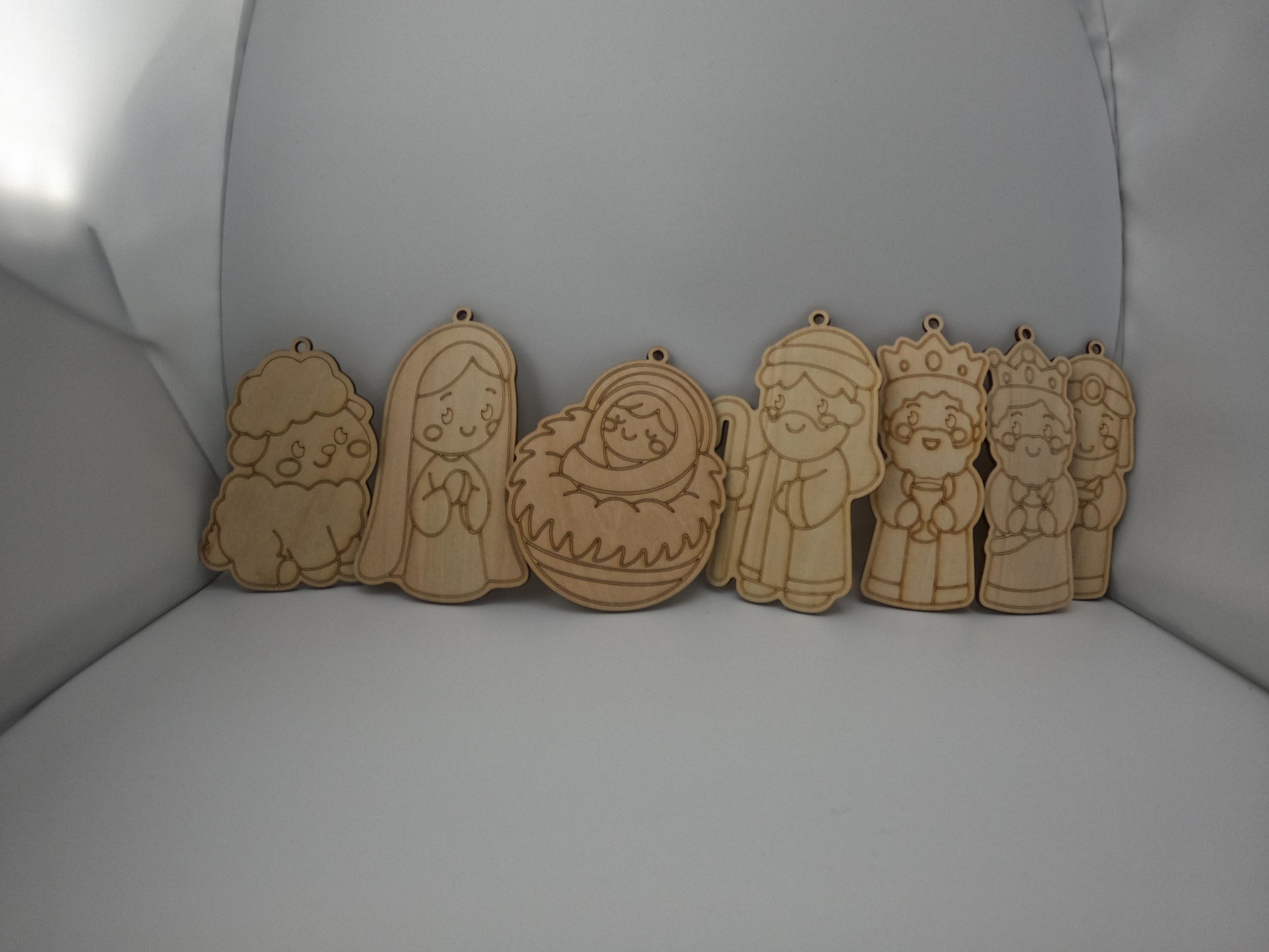 This set includes the Nativity scene (Mary, Joseph, baby Jesus, shepherd, lam, cow, and the Three Wise Men) along with two decorative angels, perfect for Christmas trees, garlands, wreaths, or wall displays.